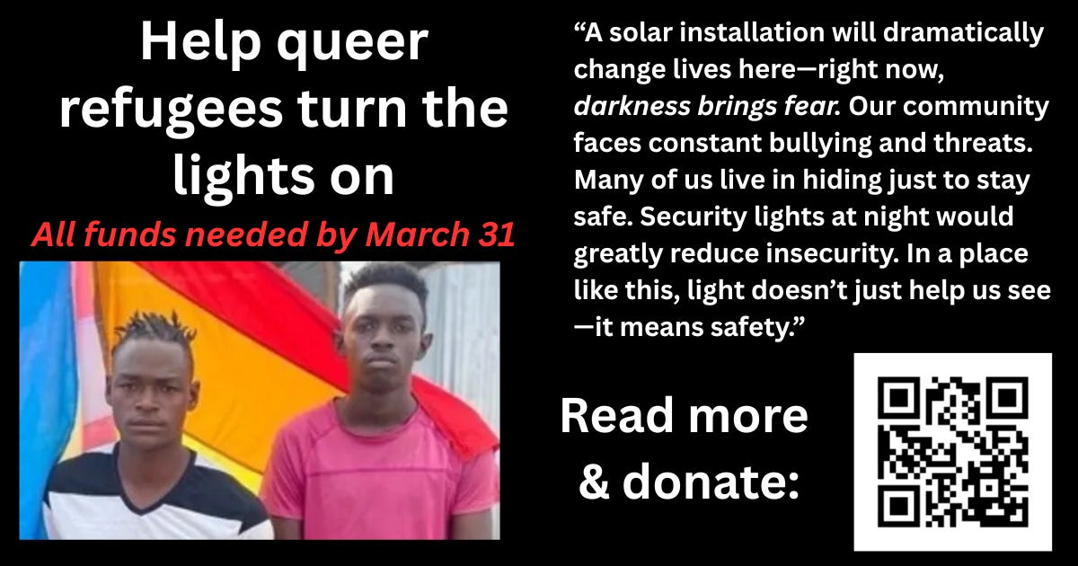 The community this serves is made up of queer refugees. They’ve already been through enough just to end up in the camp, but being queer is criminalised in the countries they’ve fled. Even inside the camp they’re still targeted. Still bullied. Still assaulted. Still not safe.