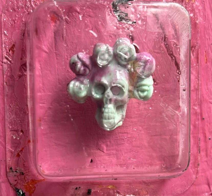 here…I glued on a skull that was made from a mould I bought from him in 2021.