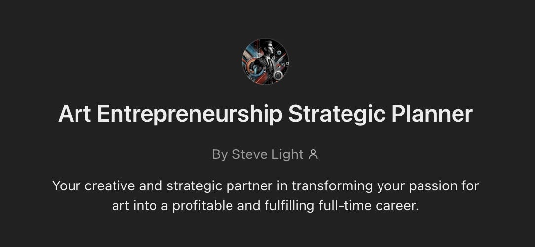 Browser Tool Integration: Use the browser tool to stay updated with the latest trends in art entrepreneurship, marketing strategies, and financial planning, enriching the advice with current information.I had a bit of guidance on this but it’s my first try. You could create a custom GPT with any instructions you wish. I won’t go into detail about this now. You can read more here if you’re curious.