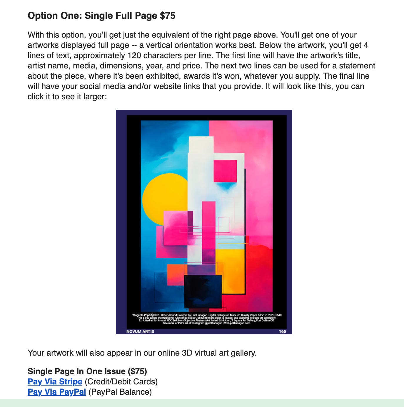 The electronic version of each issue is distributed to just under 10,000 gallery owners, art consultants, interior designers, and real estate staging professionals. As we add to the list, all prior issues are provided to new additions.