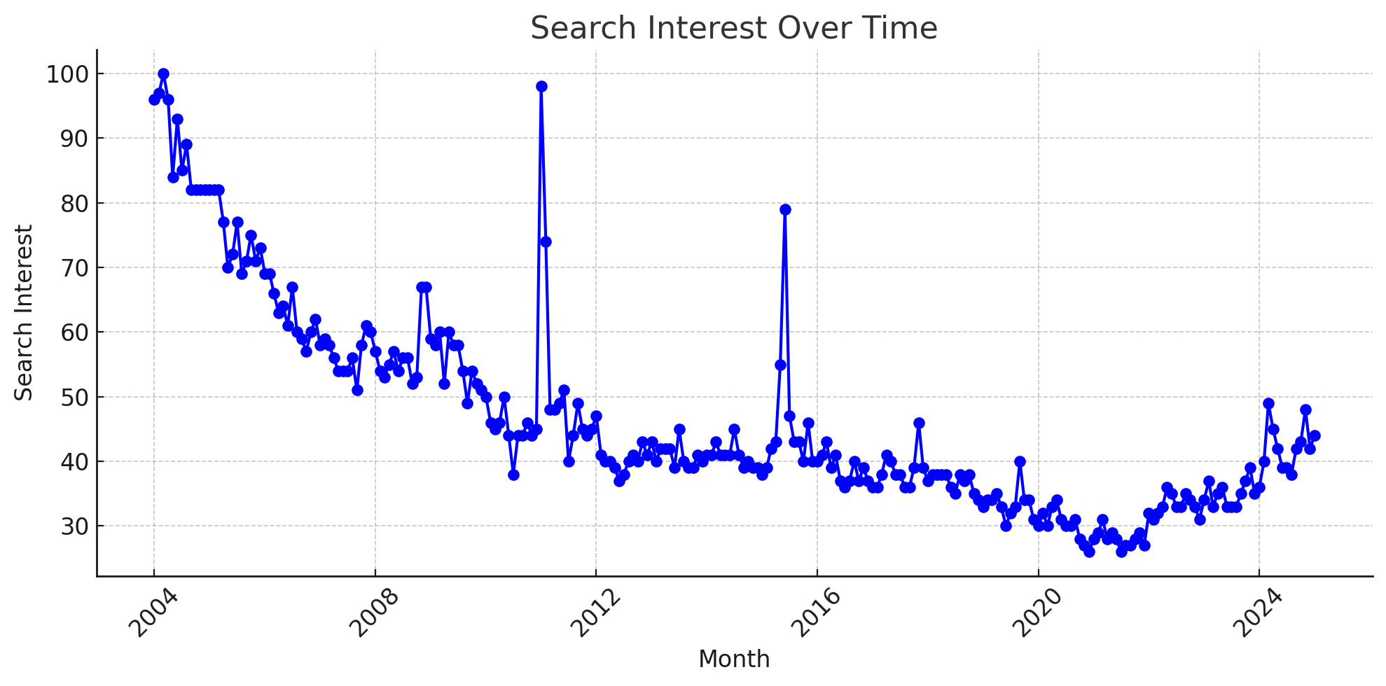 ’s Zine and their way of living. (Mehret, I hope you join the project). The note below gained considerable attention, highlighting a resurgence in the interest of zines during the cusp of an AI era, people are increasingly seeking out analogue creativity.I had a look at Google Trends, you can see that the term has been trending upwards since 2021 in this hyper-digital age!