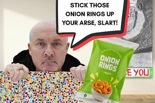 Artist Damien Hirst returned the bag of Onion Rings that I sent him (Ungrateful bastard)